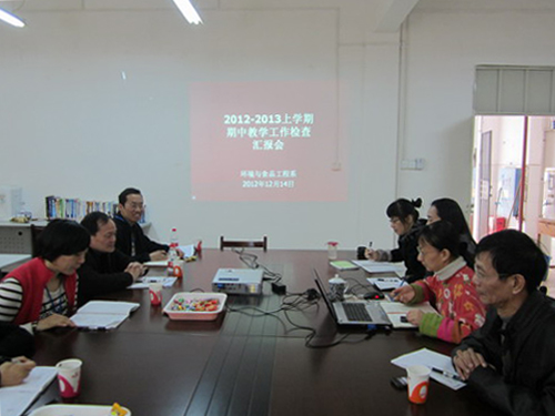12月14日上午,教务与实训管理处处长鞠红霞、副处长黄海国一行到环境与食品工程系展开2012-2013学年上学期期中教学工作检查。