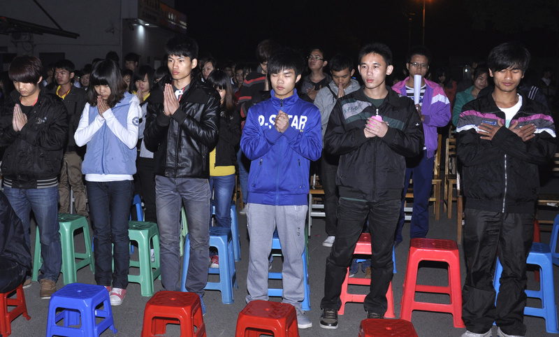 自芦山地震发生后,我院团委立即组织院青年志愿者总队在校园开展公共性的集体祈?;疃?。21日晚,在“我的梦——点亮地球,共建美好中国”主题地球环保宣传活动现场,柳州市红十字会代表覃国际队长与到场参加活动的我院50名学生在现场共同为雅安同胞祈福,同学们在舞台中央摆放了一个“心”型烛台,大家以爱的名义共同上台点燃了蜡烛,点亮了梦想,为雅安同胞祈福,每个人心里也在默默地为雅安加油。22日晚,汽车工程系学生会在竞择楼前也组织了近200人为雅安地震灾区的同胞们祈福,为遇难者默哀。