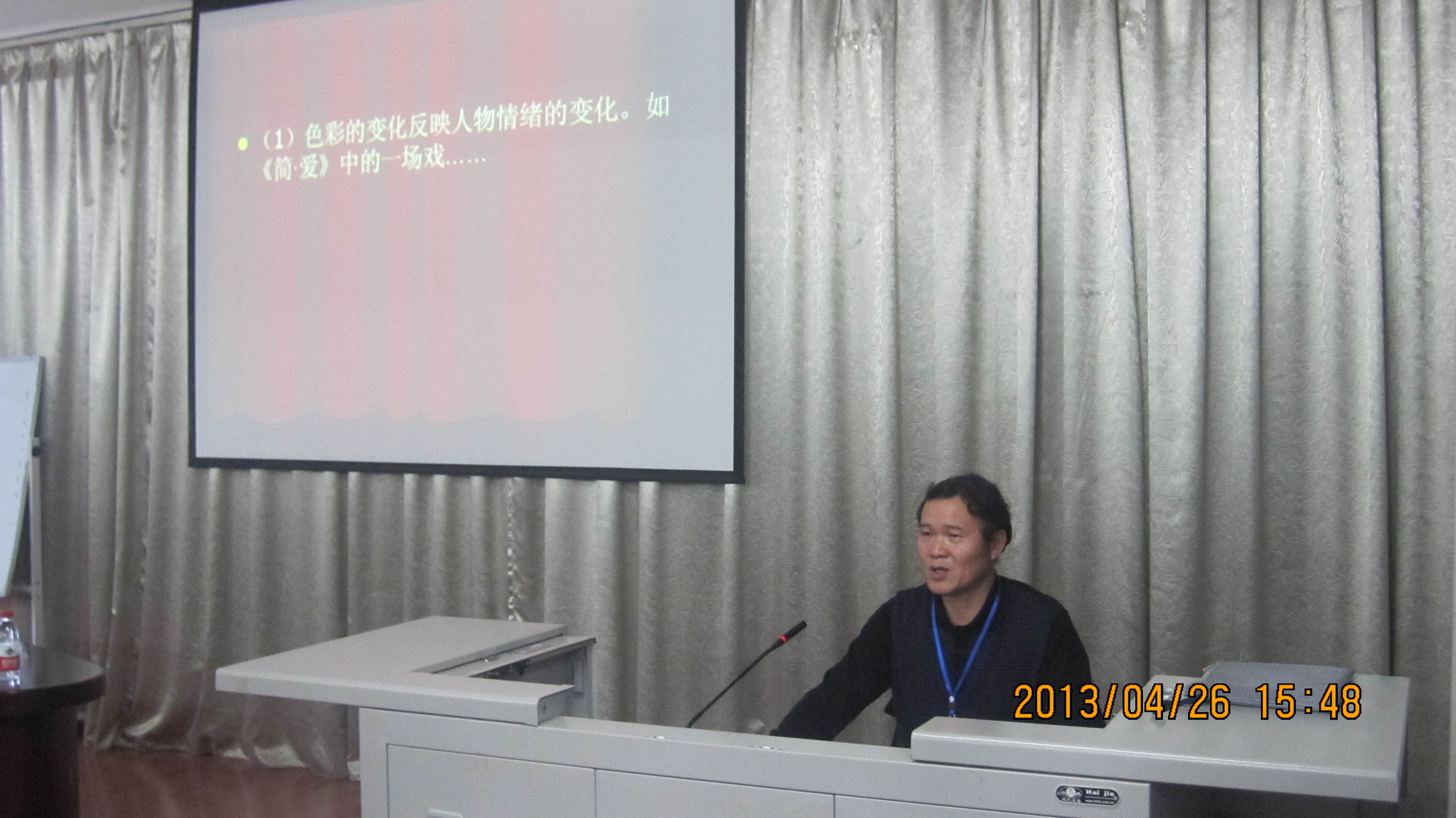 2013年4月26日下午,我院公共基础部廖学新副教授在德馨楼301教室为同学们奉上了一场以“电影色彩”为主题的精彩讲座,来自学院各系的近百名同学聆听了讲座。