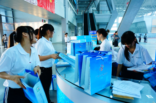 当天早上7点,志愿者们统一服装、精神焕发的出发,一到达会展中心就投入到装订材料和布置会场的忙碌工作之中;负责礼仪接待的志愿者站好位,迎接来自各地的参展人士,成为活动当天一道亮丽的风景。