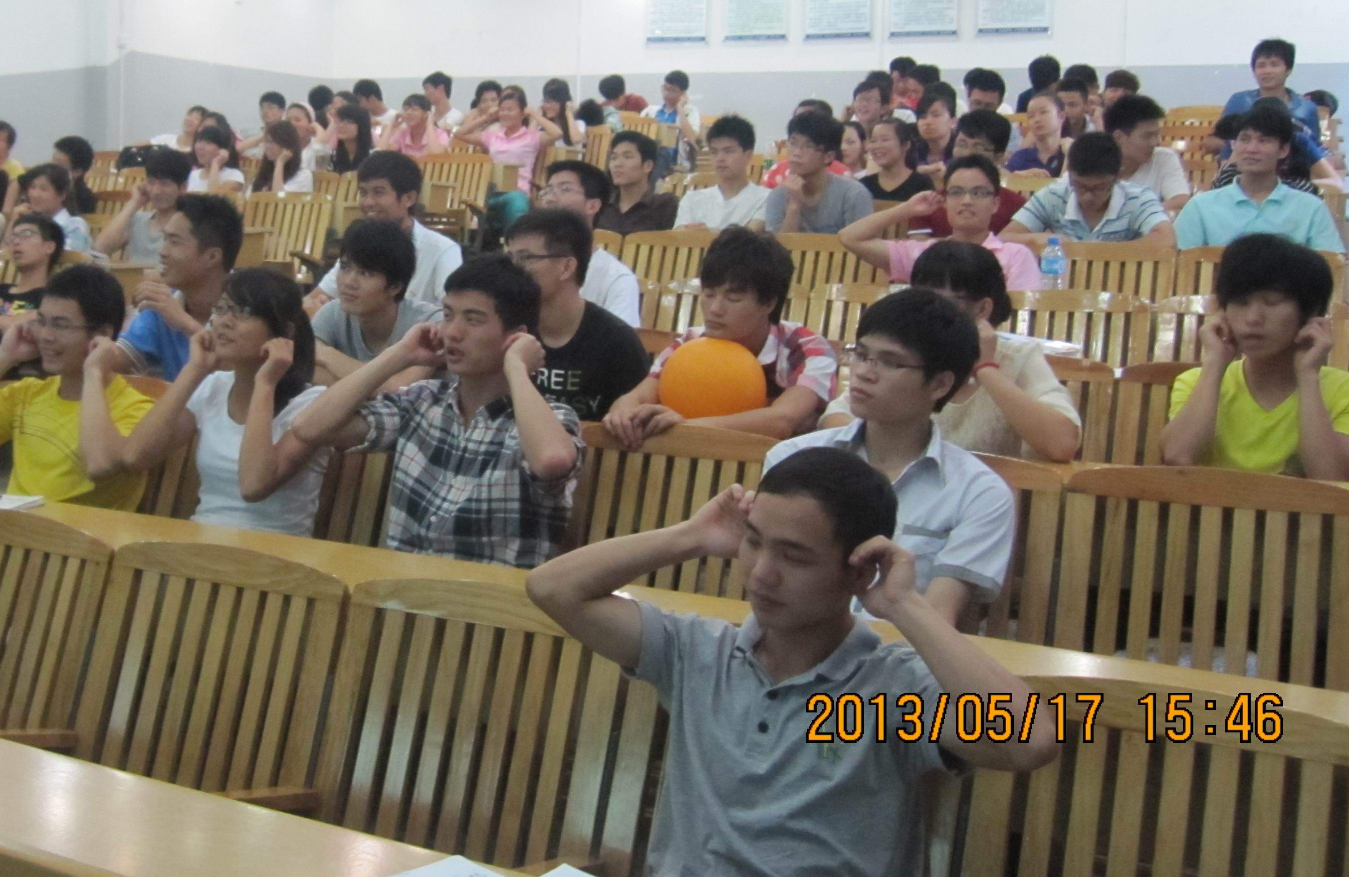 听众跟随李革副教授做保健“小动作”