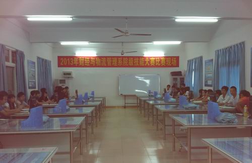 5月26日上午8点,“物流企业经营管理沙盘模拟” 院级技能大赛在思贤楼202实训室如火如荼地展开。室外艳阳高照,室内硝烟弥漫,从2012级物流管理专业148名学生中选拔出的48名精英选手,在裁判老师缪亮、磨虹任、李晓雯的监督下模拟12家物流企业打开商海之战。