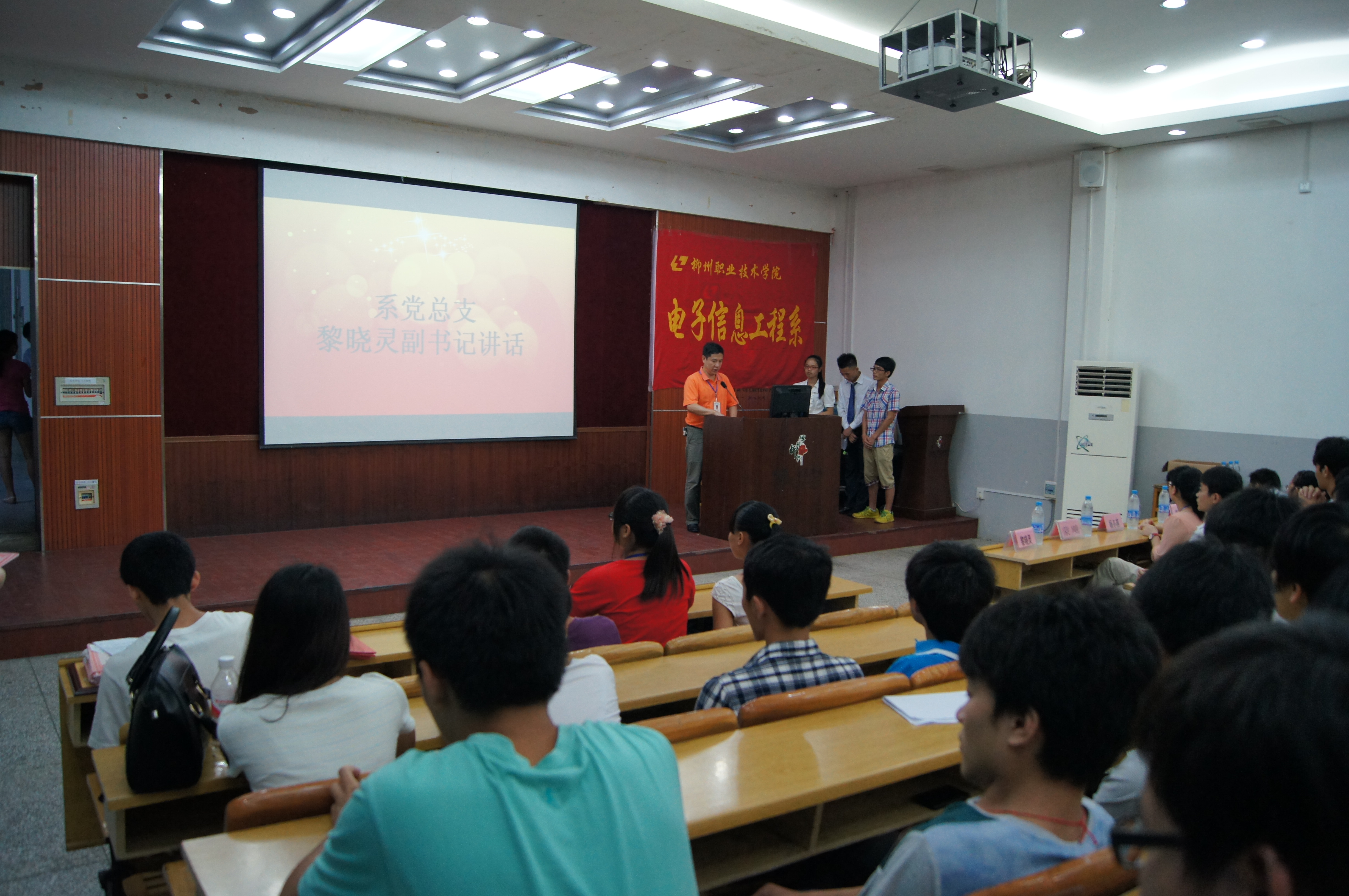 为总结电子信息工程系本学年的工作、学习情况,提升学生的工作、学习积极性,表彰过去一年工作突出的团体及个人,2013年7月2日19点整,电子信息工程系2012—2013学年度工作总结暨表彰大会在学院本部德馨楼101顺利召开。该系党总支副书记黎晓灵、副主任蒙飚、学生专干杨冬燕、团委书记江恩志、辅导员李丽,学生会全体成员及各班代表参加了此次大会。