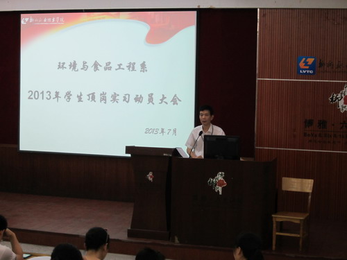 为确保2012级学生顶岗实习工作的顺利开展,该系领导非常重视前期准备工作,对此项工作精心安排, 周密部署。在五月中旬,就委派刘恒副书记与专业教师一起,前往深圳铭基食品有限公司、东莞徐记食品有限公司就学生顶岗实习工作进行洽谈及调研,经过反复比较,综合平衡,最终与东莞徐记食品有限公司达成了学生顶岗实习合作意向。之后系部几次召开工作布置会,就上届学生在顶岗实习中出现的具体问题进行研讨,并多次与徐记公司沟通协商,达成一致意见。为高效有序管理实习工作,制定了《环境与食品工程系2013年顶岗实习工作方案》等相关系列制度文件,并在七月份两次召开顶岗实习前动员大会,加强同学们对顶岗实习的了解与认识,激发同学们参与实习的热情,坚定参加本次顶岗实习的信念和信心。