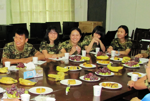 当日下午,“艺术设计系2013级新生欢度中秋座谈会”在N1-203教室温馨举行,艺术设计系的领导、辅导员们和来自内蒙、海南、福建、四川等地的11名新生参加了座谈活动,系主任佘莉和书记梁毅给大家送上节日的祝福,大家边品尝香甜的月饼和水果,边进行交流,领导和老师们的嘘寒问暖让11名区外新生格外感动,来自四川巴中的李仪同学动情地说:“我远离家乡度过了第一个中秋节,老师们特别亲切,学长们特别友好,让我们有了在家一般温暖的感觉。”(文/阎志斌、张桂 图/许正会、何敏杰)