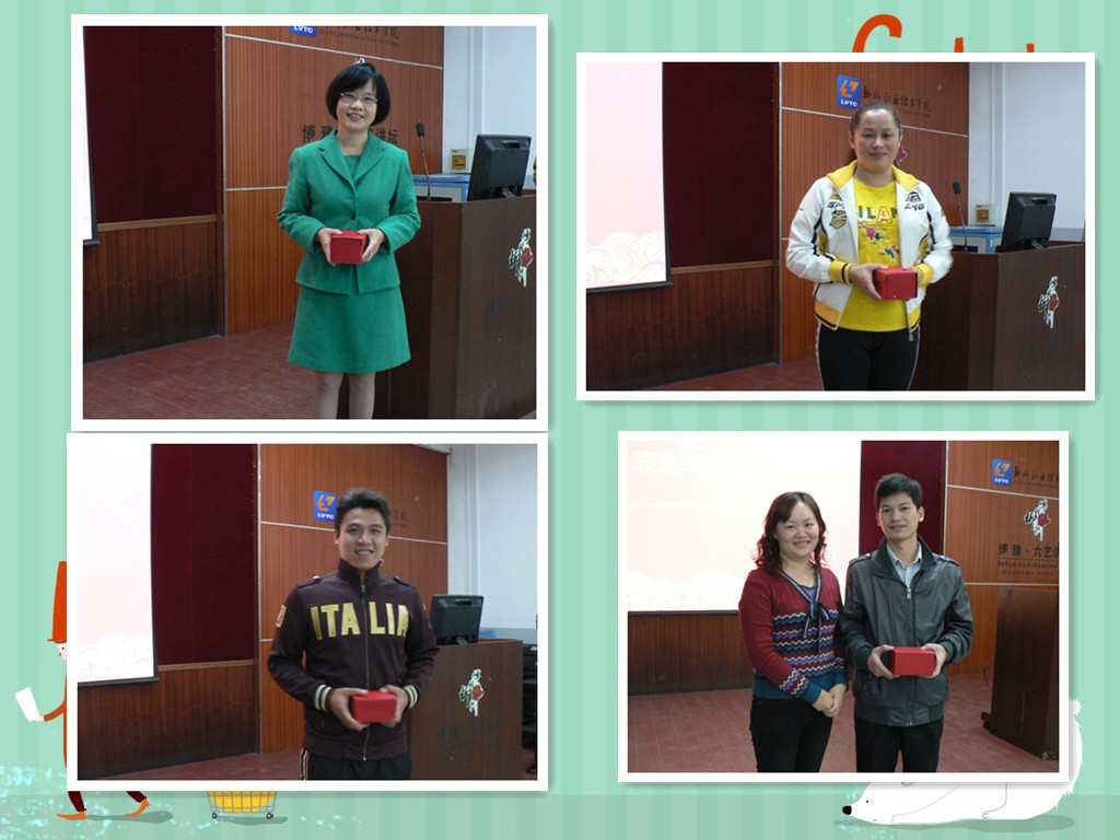 会议还举行了2012-2013学年教学工作大会颁奖仪式,该部主任姜献生宣读了公共基础部《关于表彰2012-2013学年教学工作先进个人的决定》,表彰了学年度在教学工作中表现突出的6名教师,各教学团队负责人作为颁奖人员分别为获奖者颁发了实践教学指导教师奖、团队奉献奖、传帮带奖、新人奖、奉献奖、实践活动指导教师奖等6个奖项奖状和奖品。