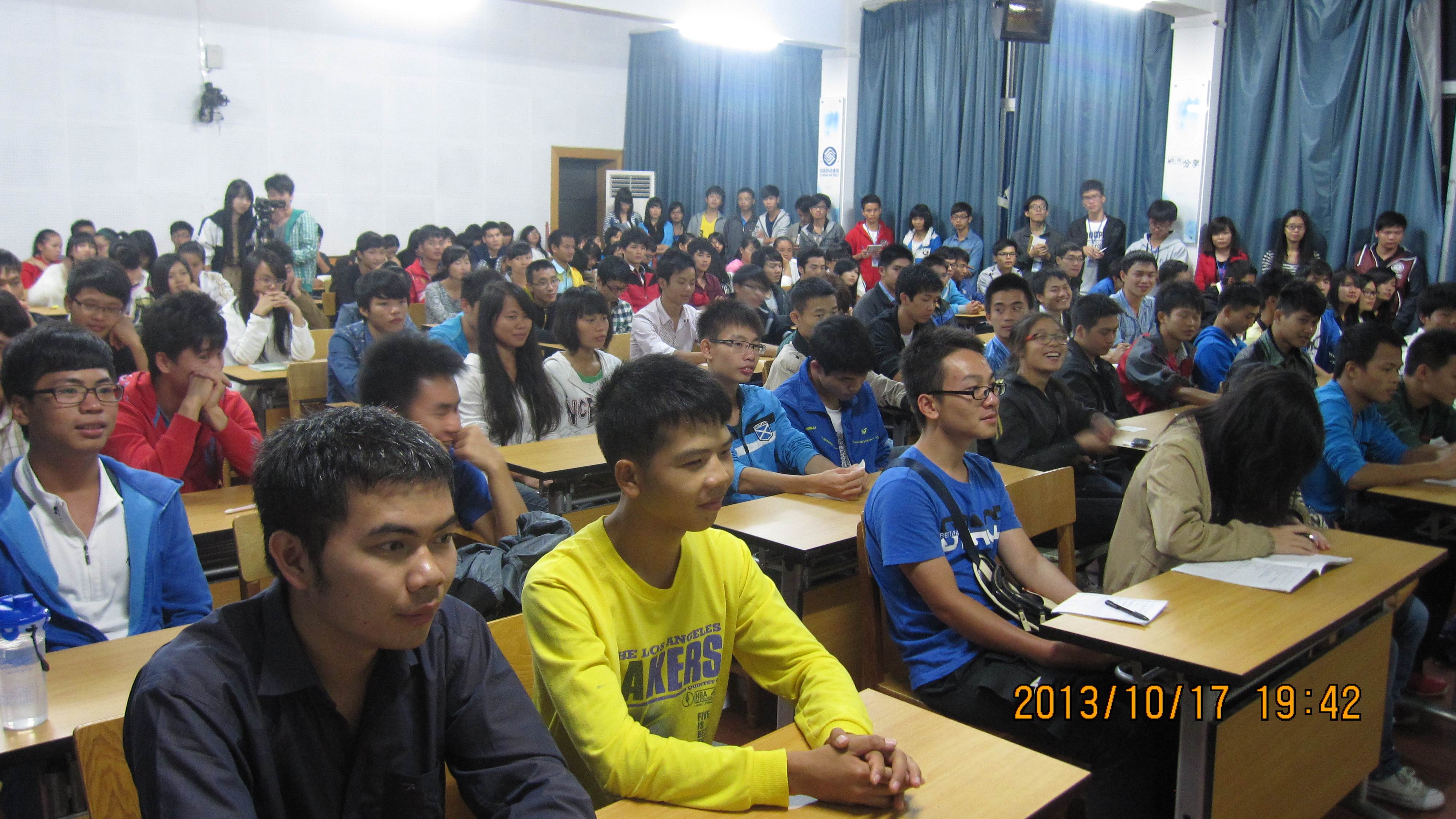 2013年10月17日晚上,我市 “青少年心理咨询”栏目的特邀嘉宾、有多年心理辅导和咨询经验的学院公共基础部曾昭武老师应素质大讲堂之邀,在德馨楼301教室为全院120多名师生带来了一场题为《大学生恋爱心理》的讲座。
