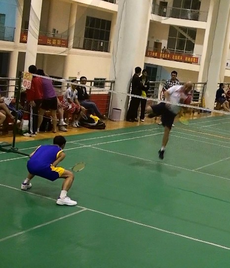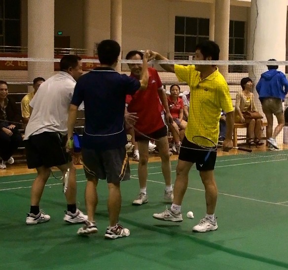 比赛从10月17日下午开始,每天下午5:40在学院体育馆羽毛球场进行,设男单、女单、女子双打、男子双打、男女混双五个项目共五局比赛。整个比赛过程气氛热烈,选手们穿着轻便的服装活跃在赛场上。从选手们兴奋的脸上、每球必争的英姿上,我们深深地感受到运动员不言放弃、奋力拼搏的精神。裁判员和工作人员恪尽职守、一丝不苟。场上选手奋勇扣杀、斗智斗勇,场下观众随着白色羽毛球的飞舞、起落而应声喝彩,时时有惊险,处处显惊心。掌声、欢呼声不断,充分体现了一种团队奋进的精神。