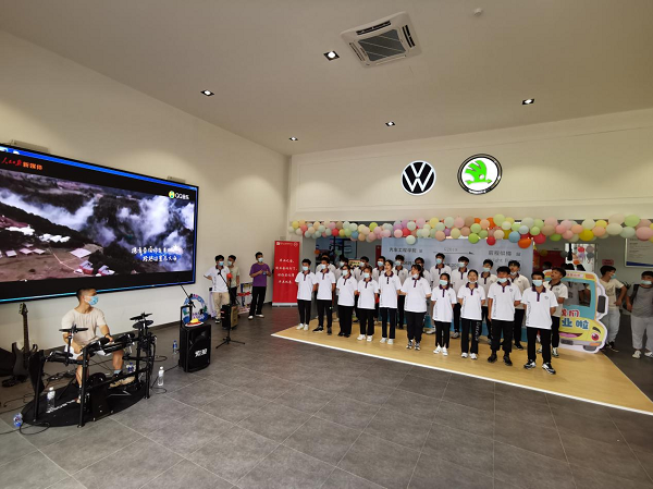 在活动开始前,根据学校疫情防控实施方案,由学生工作人员提前对场地进行消杀。在活动入口处工作人员对入场毕业生一一核对健康码、检测体温、手部消毒、戴口罩等防疫流程,布置好人流路线,严格落实防疫要求。汽车工程学院2021届毕业嘉年华活动分为两个篇章,分别是“追忆”和“送别”?!白芬洹逼轮?,借着感谢师恩、齐心向党的主题思想,上汽大众培训中心展厅大屏幕上滚动播放毕业生们从2018年入学以来各类视频图片,带领现场的毕业生们依稀回忆了三年来的点点滴滴,离别之际,感慨万千。在“送别”篇章中,由2020级学生组成的合唱队为毕业生们表演了一场快闪节目《星辰大?!罚⒁馕蘼郾弦瞪亲叩侥睦?,汽车工程学院学子们永远是一颗炽热的恒星,坚定理想信念,努力奋斗,奔赴美好前程。不少毕业生也跟着唱,在他们眼中充满对未来的期待,合唱把现场气氛慢慢推向高潮。