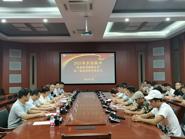 新闻网消息(文/汽车工程学院  陈栋  图/汽车工程学院  陈栋  杨海洋)为进一步贯彻落实党中央、自治区、柳州市乡村振兴工作部署,推进职业教育服务三农,实施技能引领,助力农民致富,充分发挥我校职业教育的优势。我校于2021年7日16日下午3:30在官塘校区T1D201会议室,举行了2021年乡村振兴“挖掘驾驶操作员”培训班(第一期)开班仪式。