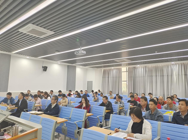 学院党总支书记韦耀业正在讲授《意见》的主要内容