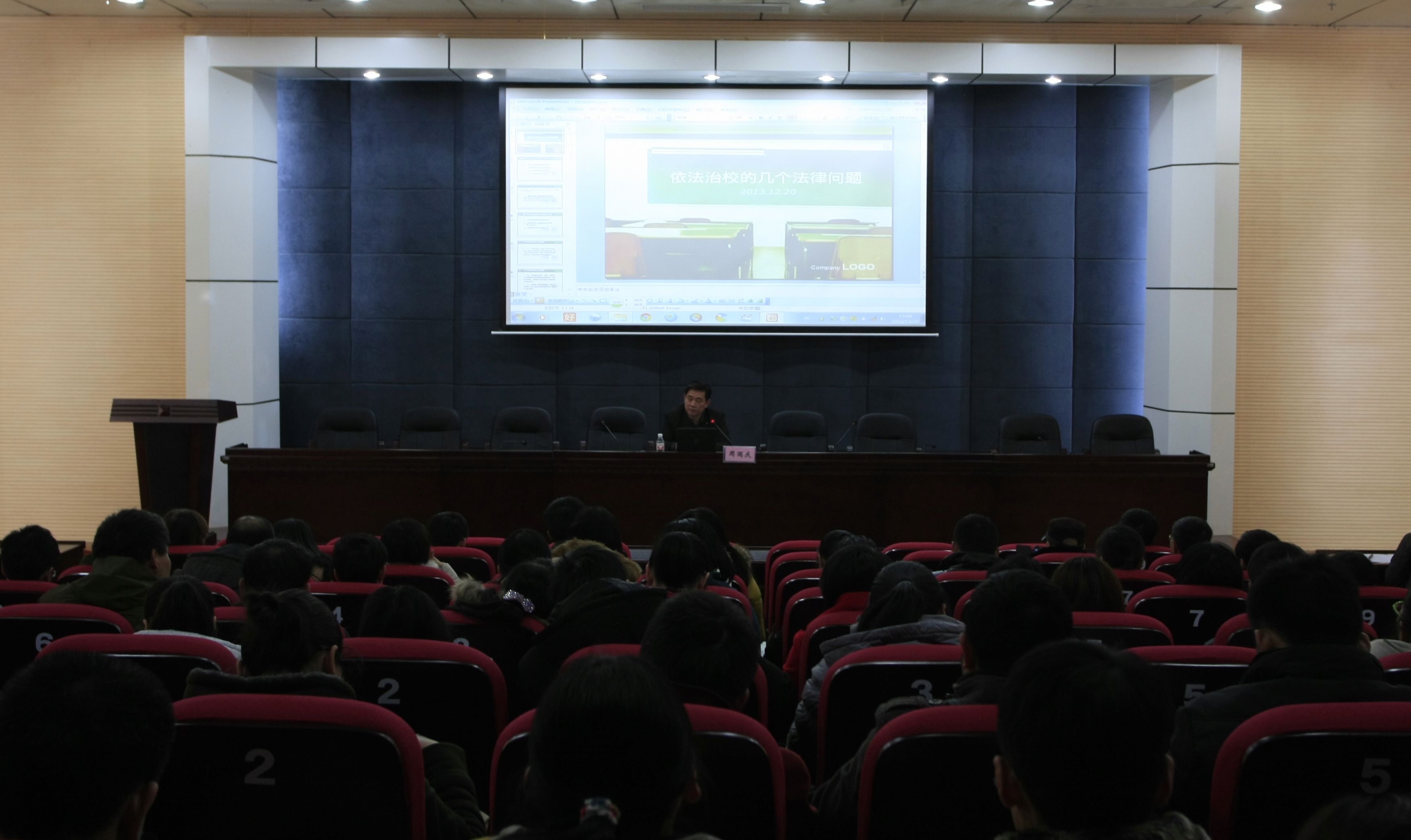 12月20日下午,我院2013年度教职工法制宣传教育讲座在学院行政楼100报告厅举行,由学院法律顾问、广西鱼峰律师事务所主任、柳州市律师协会宣教委主任周国庆律师作了题为“学校常见法律风险防范与处置”的普法讲座。全院各系部、行政部门教职工代表150人现场听取了讲座。