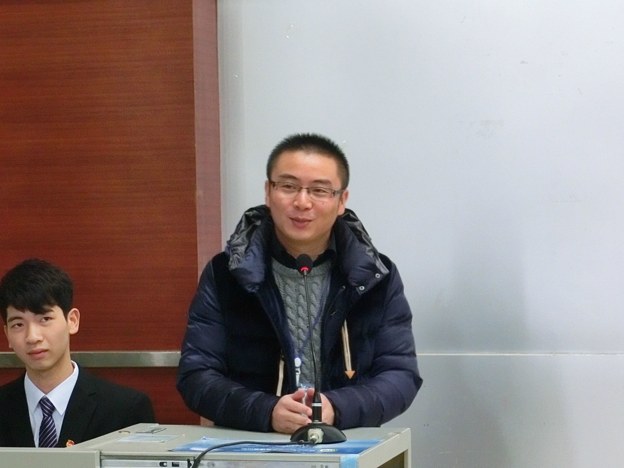 随后,老团员代表戴健军同学上台发言,他为新团员送上了祝福,同时也希望新团员能在往后的工作中积极的贡献出自己的力量。接着,新团员代表也上台发言表示会牢记团的宗旨,无条件地履行团员的义务,做一名优秀的共青团员。