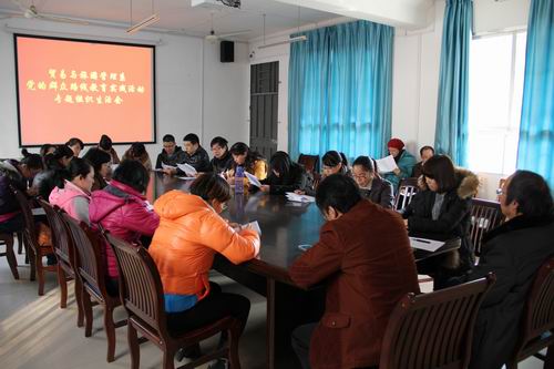 12月27日下午,贸易与旅游管理系教工党支部在达理楼303召开党的群众路线教育实践活动专题组织生活会,进一步交流思想、查找不足、改进作风。该系挂点领导、学院党委副书记阳旭以普通党员的身份参加会议并作点评。