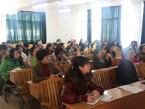蒙柳翠老师以《“翻转课堂”教学新模式——微课程设计与制作》为培训主题,从“翻转课堂新模式”、“如何理解微课程”、“如何制作微课程”等三方面向老师们介绍了微课。她首先阐述了微课的定义,分析了“短、小、精、悍”的微课与课堂实录的差别;从国外的可汗学院说起,介绍了微课的起源和发展;并通过播放视频重点讲解了如何设计微课,让教师们领会到了微课程“微而精,小而奇,内容少,蕴意深,从小处入手,解决一个问题”的独特魅力。