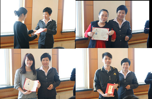 实习结束后,上海旅游人才交流中心联合各实习酒店召开实习生表彰大会,通报了2012级国际经济与贸易专业44名学生在上海酒店实习的表现及酒店的评价,并评出陈禄军和刘慧慧两名优秀实习生,现场还颁发优秀实习生证书和奖金。