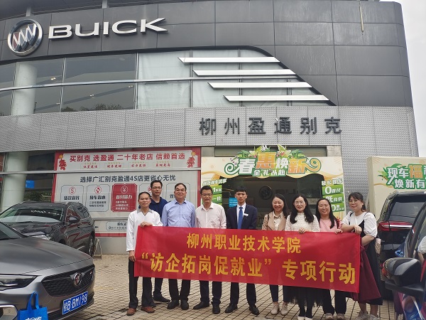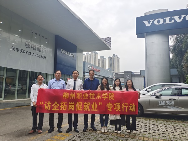 新闻网消息(文/汽车工程学院  韦夏利  图/汽车工程学院  韦红旅)为了贯彻落实教育部提出的“高校书记校长访企拓岗促就业”专项行动,拓展毕业生就业渠道,做好毕业生就业服务工作,4月22日下午,汽车工程学院访企拓岗专项行动小组成员在党总支书记韦耀业的带领下,学生科科长曾志,专任教师及辅导员代表一行共8人开展了访企拓岗促就业专项行动,在柳州市学院路汽车4S店聚集区,访企小组成员马不停蹄地走访了四家企业,分别是上汽大众柳州桂鹏4s店,柳州广汇弘耀沃尔沃4S店,柳州盈通别克汽车销售服务有限公司,广汽传祺柳州广百店。