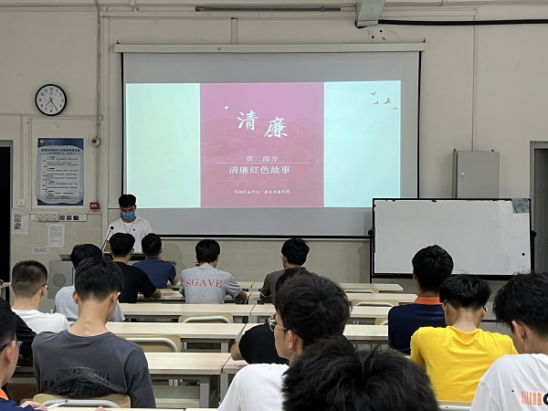新闻网消息(文、图/汽车工程学院  宾海华)为了响应学校进一步加强党风、校风、教风和学风建设,营造良好的育人环境,全面推进“清廉柳职”的建设,汽车工程学院学生党支部于2022年5月25日在官塘校区T3-D201教室,开展了“弘扬红色文化,建设清廉校园”主题党日活动。