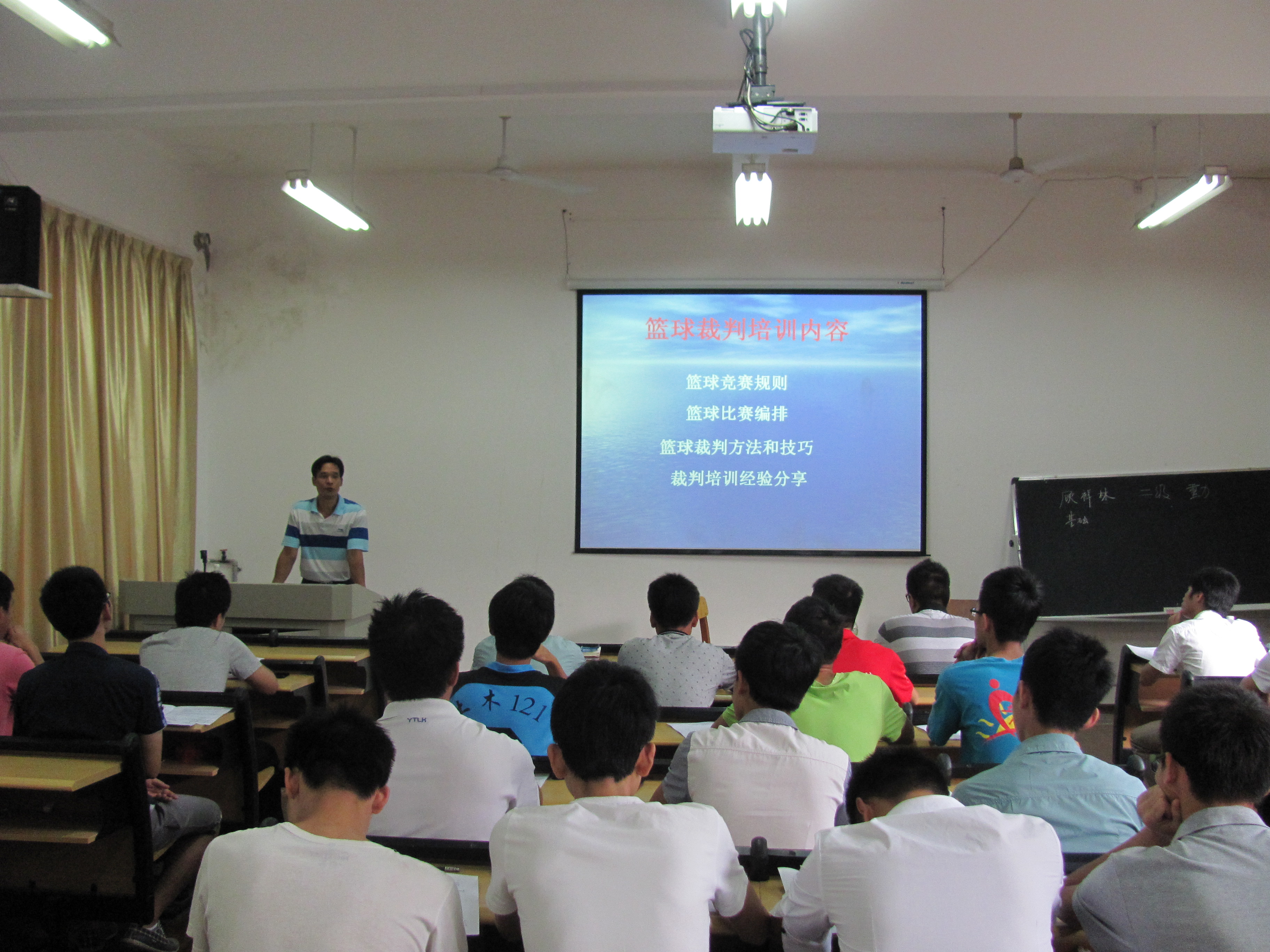 2014年6月8日至25日,受柳州市体育局委派,我院公共基础部体育教学团队黄宗能副教授,先后到广西科技大学和广西科技大学鹿山学院进行篮球裁判培训。参加学习培训的105名学员最后都顺利通过了篮球裁判考级考试。