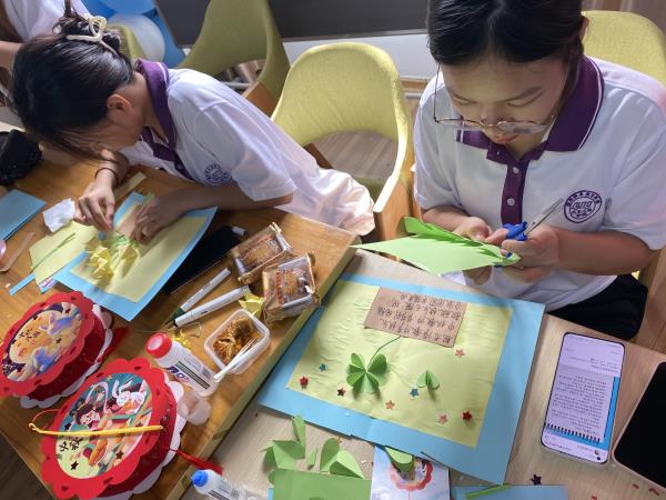 会上,同学们畅所欲言,说起自己家乡的节日习俗、节日美食,谈谈返校后学习生活的状况,也表达了对教师们衷心的节日祝福。随后老师和同学们一起吃月饼,制作花灯、教师节贺卡等,活动过程笑声连绵。老师与学生一同制作花灯,并写下中秋祝福,寓意团圆,寄托思念。随后现场的同学们开始diy教师节贺卡,用满满的心意在卡片上写下感恩的话语,然后制作成一张张贺卡递送给老师。