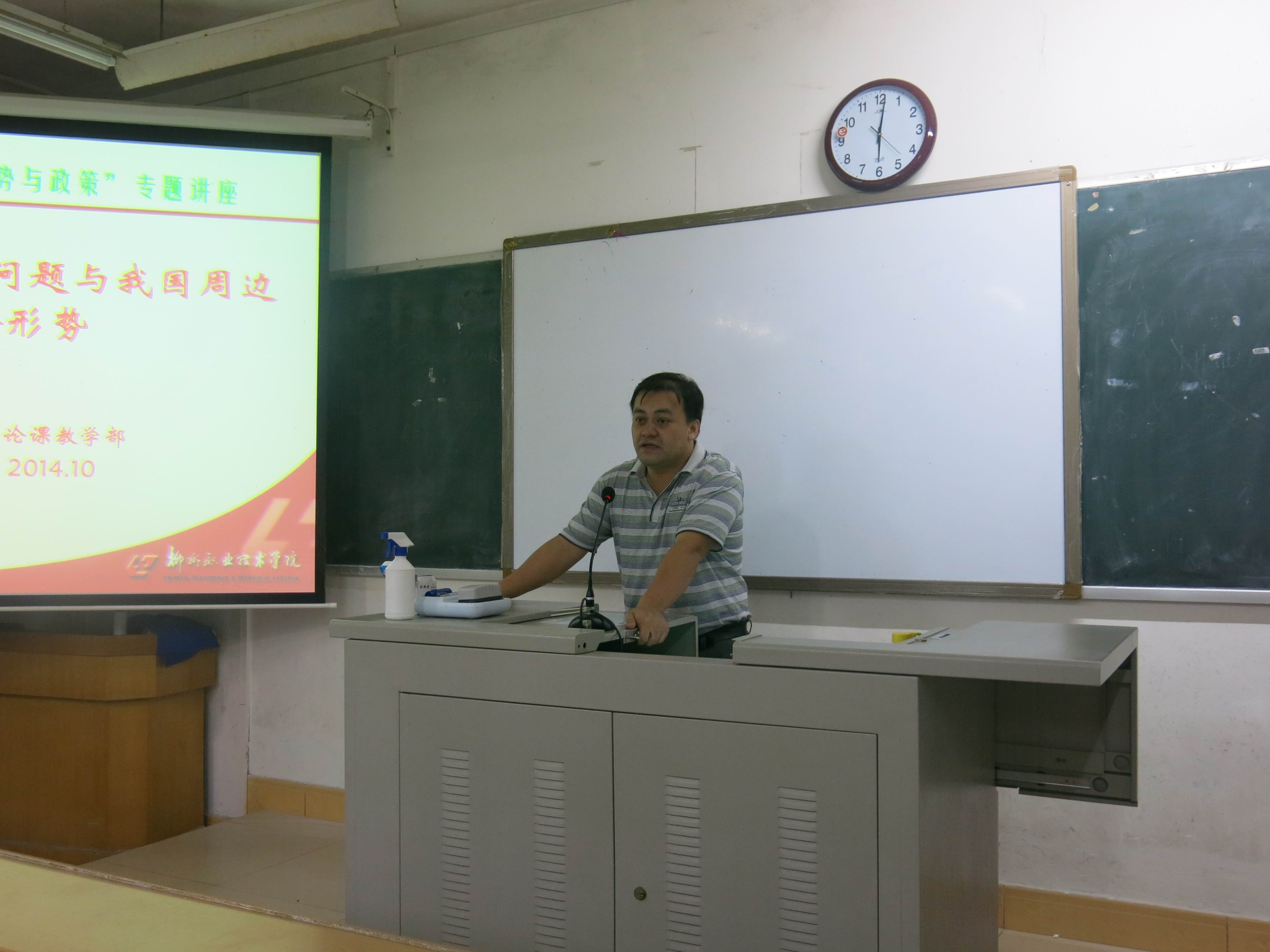10月17日下午,柳州职业技术学院公共基础部思想政治理论课教学部2014-2015学年上学期《形势与政策》课程师资培训班在博闻楼103教室举行,各系主管学生工作的党总支书记、副书记、思想政治理论课教学团队全体教师参加了培训。
