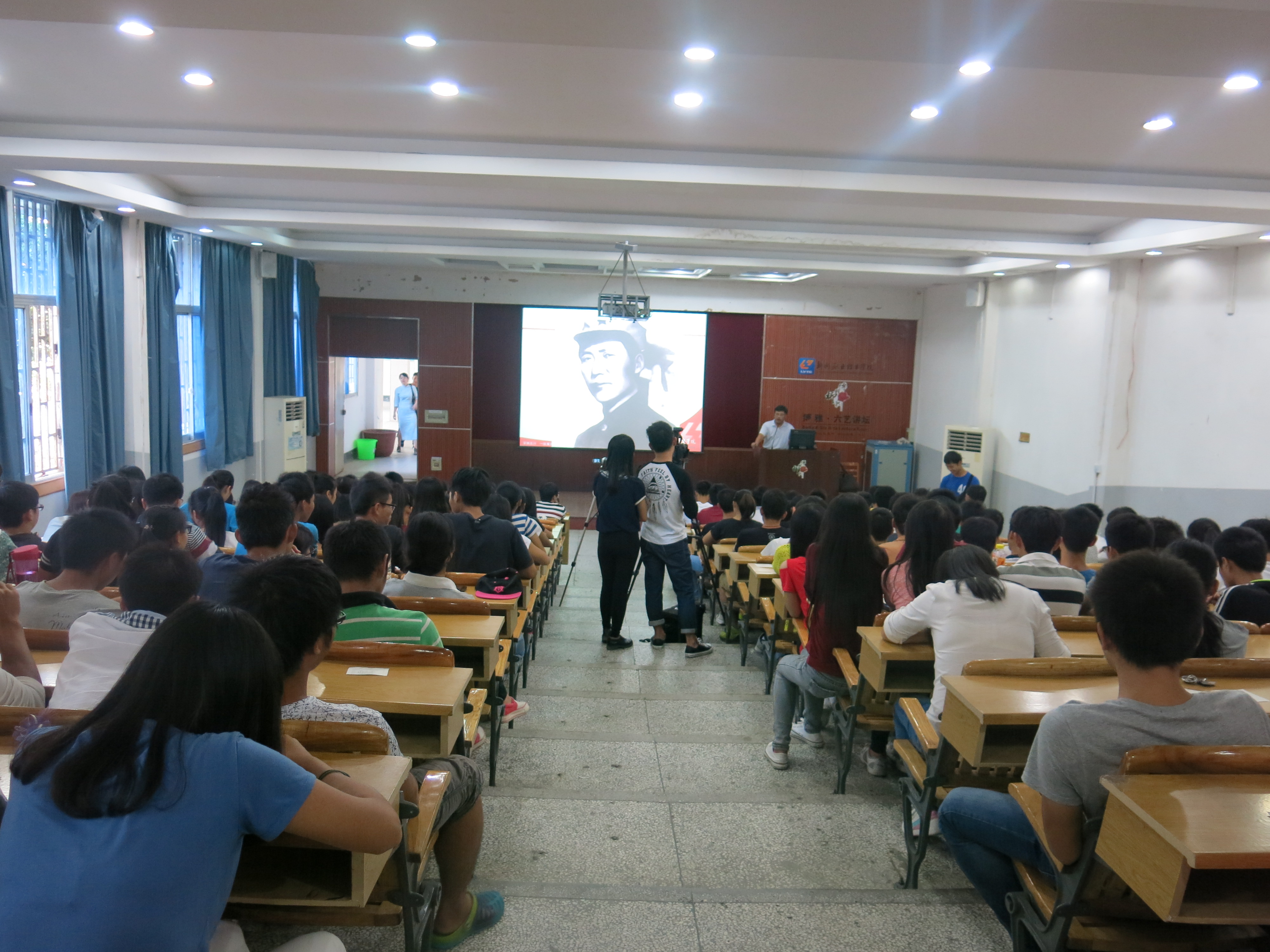 “……惜秦皇汉武,略输文采;唐宗宋祖,稍逊风骚。一代天骄,成吉思汗,只识弯弓射大雕。俱往矣,数风流人物,还看今朝?!苯沧鹂妫淌谝砸皇酌蠖摹肚咴按海芳で榭?。感染了在场的一百多名同学,开启了重温经典的第一幕。姜教授以翔实的史料,生动形象的图片,极具感染力的音乐、视频给同学们展示了就连在军事指挥上颇为自负的蒙哥马利元帅都情不自禁拍案叫绝的经典战例――“四渡赤水”的整个过程,并用通俗易懂的语言给同学们详细讲解了毛泽东贯穿战役的战略理论及指挥艺术,把同学们带进了战火纷飞的峥嵘岁月。