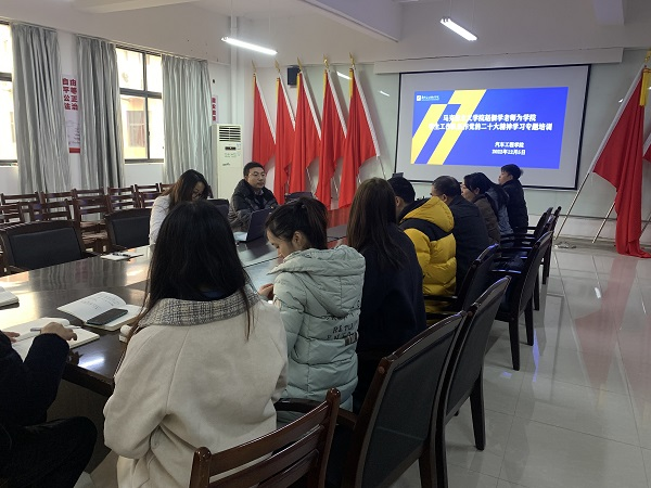 新闻网消息(文/汽车工程学院 甘育露 程峥  图/汽车工程学院 甘育露)为深入学习宣传贯彻党的二十大精神,帮助汽车工程学院学生工作队伍深刻领会党的二十大精神的丰富内涵和核心要义,2022年12月5日,汽车工程学院邀请到马克思主义学院赵佃学老师以“学习贯彻二十大精神,奋进强国伟业新征程“为题到学院就学习宣传贯彻党的二十大精神进行专题辅导。学院党总支书记韦耀业及全体辅导员参加,会议由曾志科长主持。