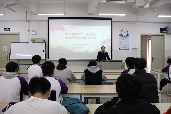 新闻网消息(文、图/汽车工程学院 韦双甜 杨晓)为深入学习宣传贯彻党的二十大精神,切实把广大团员青年、学生干部的思想和行动统一到党的二十大精神上来。2022年12月9日下午,汽车工程学院青马班于官塘校区T1-D301开展“学习贯彻党的二十大精神,争做强国时代好青年”专题学习活动。马克思主义学院青年讲师团赵佃学老师作主讲人,汽车工程学院第六期、第七期青马学员代表参加,此次学习活动共计140余人。