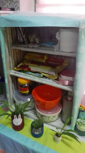 11月28日下午,比赛开始。只见各宿舍的床铺整洁,地板干净,明亮舒适,给人带来精神上的愉悦。各宿舍的同学们都积极贡献自己的创意,充分利用废弃物品装饰自己的宿舍。例如,把废弃的一次性水杯、瓶子别出心裁地打扮成漂亮的风铃等手工艺品;用报纸卷成直筒,粘贴在纸板上做成杂物柜;还有用宣传纸折叠成小纸花、用鸡蛋壳养花等奇妙的招数扮靓宿舍。各宿舍按照各自的特色,都起了一个别具一格的名字——“简朴寨”“闺蜜之家”“乌托邦”“温暖屋”“九宫阁”。最后,14#202、203等13间,6#103、106等8间,7#106、112、203等7间,共28间宿舍评为“优秀宿舍”。