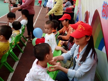 柳州市星语康复训练中心是一所为各种心理、精神等发育障碍儿童及其家庭提供儿童康复训练和家长培训、帮助有特殊需要的儿童获得科学、全面的教育训练,尽早发挥其潜在智能的非营利性质的民间公益组织。在为协助康复训练中心举办运动会的准备工作中,总队为给星语的孩子一些关怀和帮助,组织了一批志愿者前往该中心帮助老师看护孩子、整理道具以及维护现场秩序等。