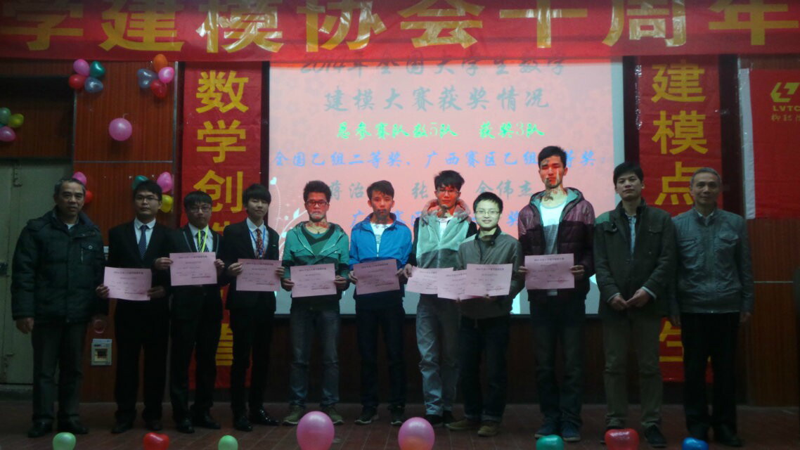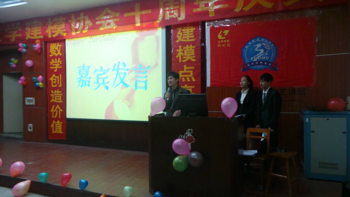 新闻网消息(通讯员 基础部 韦碧鹏、数模协会 林子欣 摄影/闫淑娇)12月21日晚,我院素质教育基地数学建模协会在德馨楼101教室举行了十周年庆典晚会,公共基础部副主任陈芳副教授、李革副教授、高职数学教学团队负责人白克志副教授、数学建模协会指导老师李大林教授、韦碧鹏老师应邀出席,各系部、各社团代表以及数模协会全体成员近100多人观看了本次晚会。
