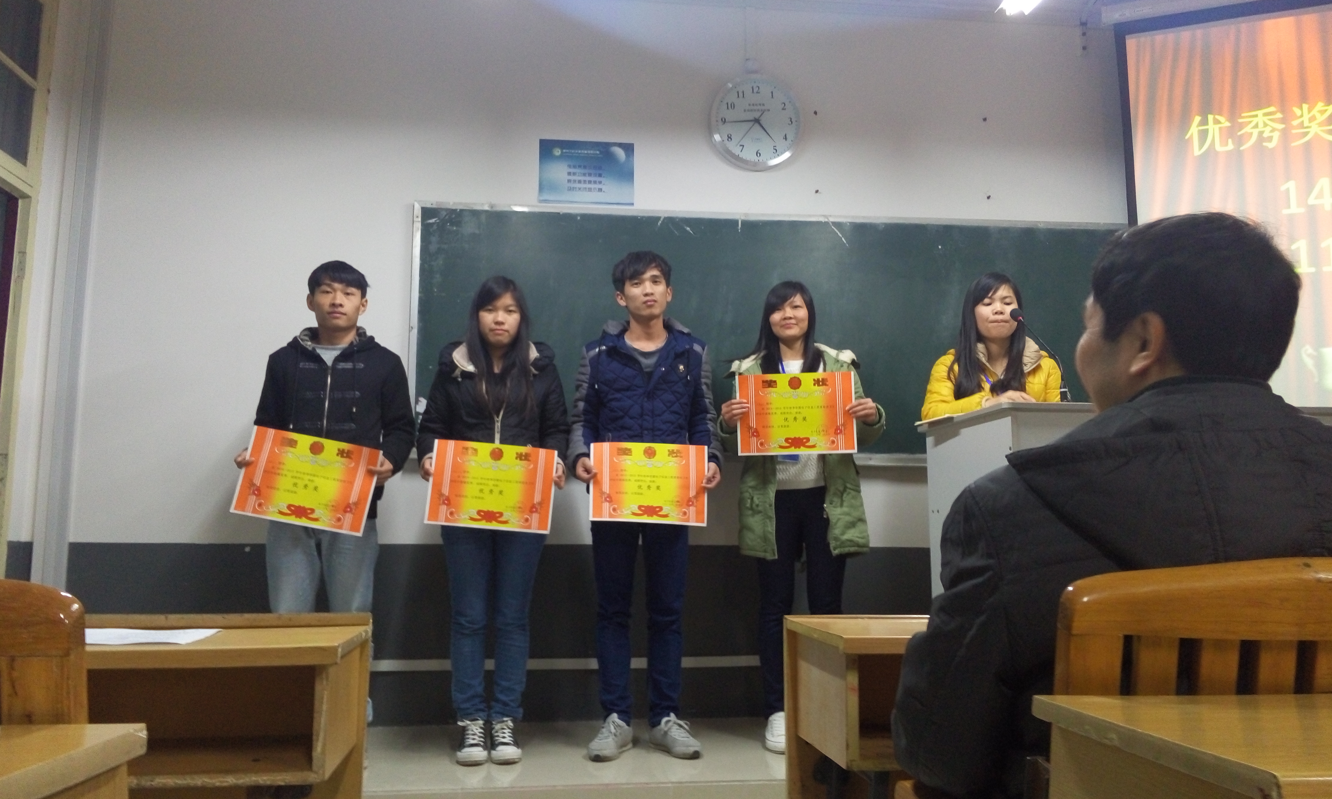 新闻网消息(通讯员/郑艳婷)2015年1月9日下午,电子信息工程系在学院本部文华楼206教室举行了宿舍卫生评比颁奖仪式。出席本次颁奖仪式的嘉宾有电子信息工程系党总支副书记黎晓灵老师,团委书记张晖宇老师,学生专干卢岚岚老师,杨冬燕老师以及各班辅导员。参与本次颁奖仪式的还有各班生活委员、宿舍代表与系学生会全体成员等。
