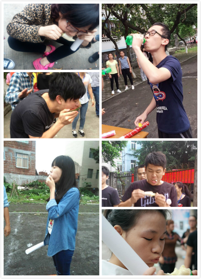 这是一场吃货们的接力赛,这是一场吃货们的体育竞技,看谁在指定的关卡中吃得快,跑得快。“谁说吃货不能跑,我们虽然喜欢吃,但也能飞快的奔跑!”这是参赛的同学们在比赛开始前的豪言壮语。