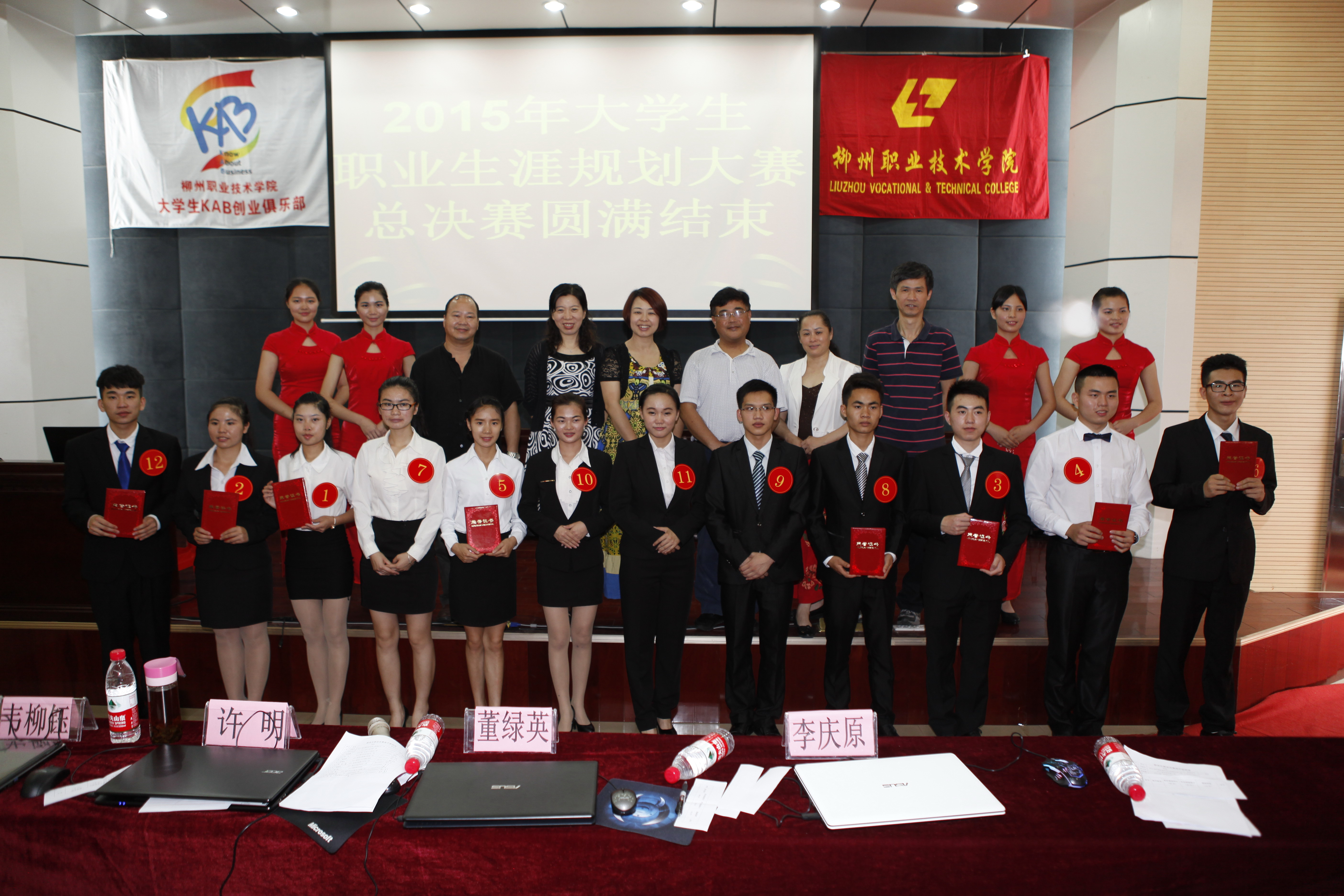 新闻网消息(通讯员/基础部 韦柳钰、大学生KAB创业俱乐部 何晓燕)大学是一个新的起点,新的篇章,我们应该规划好属于自己的未来,展开人生职业生涯规划的第一篇章。为了全面普及职业生涯规划知识,引导大学生树立正确的成才观、就业观,加强大学生的职业规划意识,帮助大学生科学地规划自己的职业生涯,学院举办了2015年大学生职业生涯规划大赛,大赛由素质教育基地主办、大学生KAB创业俱乐部承办。经过了预赛、复赛的层层选拔,12名来自各系的优秀选手于5月8日下午在学院本部行政楼100报告厅进行了本次大赛的最后一轮角逐。