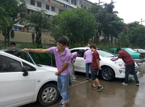 2014级汽检中德班开展义务洗车活动