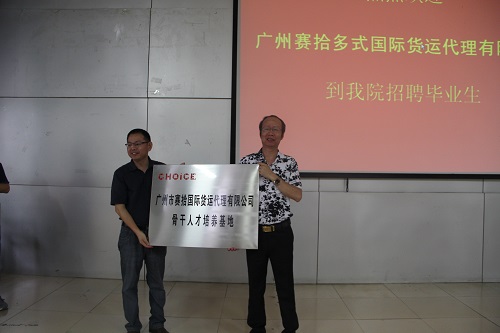 2009年至今,广州赛拾公司已经与柳州职业技术学院合作了第六个年头,我院为赛拾公司输送了百名来自国际经济与贸易、市场营销、电子商务专业的专业人才,为进一步开拓合作市场,6月5日上午9点30分,赛拾公司举行了“骨干人才培训基地”授牌仪式,这意味着广州赛拾多式国际货运代理有限公司与柳州职业技术学院的合作进入了一个更高的层面。