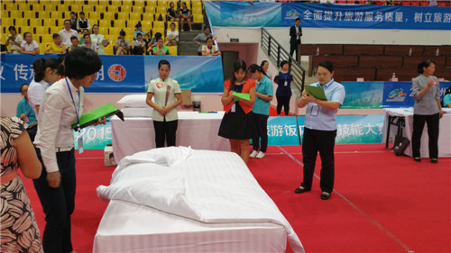 新闻网消息(通讯员/贸旅系 陈月明、谭欣、黄珣)为充分发挥柳州市旅游饭店在提升旅游服务质量中的主体作用,切实提升柳州市旅游饭店服务质量,全面提高柳州市旅游饭店员工的服务技能水平,根据中国旅游饭店业协会《关于举办2015年中国技能大赛—全国旅游饭店服务行业职业技能竞赛预通知》要求,柳州市于6月24日-25日举行举办2015风情柳州旅游饭店服务技能大赛,比赛项目分别为:中餐摆台、中式铺床、西餐摆台、鸡尾酒调制、工装展示以及外语水平、理论水平等多项考核,涵盖旅游饭店的主要服务内容。