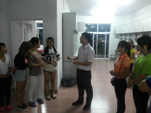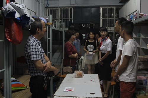 新闻网消息(通讯员/贸旅系 吴鹏、陈月明)9月12号晚,贸易与旅游管理系党委书记牛永惠、主任何志忠、副主任谭欣、林志红、学生科长陈月明以及新生辅导员、专业教师一行人,深入男生宿舍楼13栋、女生宿舍楼15栋看望2015级新生,了解大家的住宿和入校感受。