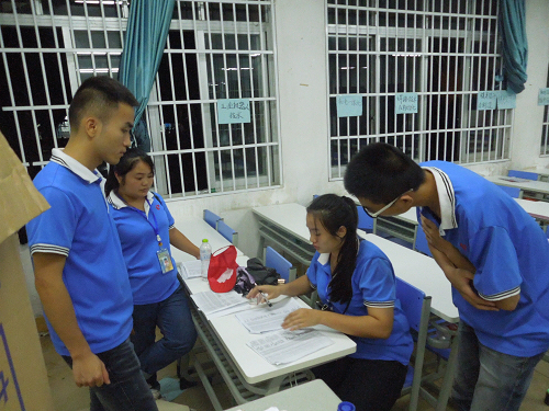 夜幕降临,新生们也基本报到完毕,迎新工作接近尾声,新生们回宿舍了,其他工作者也陆续收工,剩下一群头戴“小红帽”的志愿者,则要坚守到最后,做好最后的收尾工作,为迎新工作画上一个完美的句号。