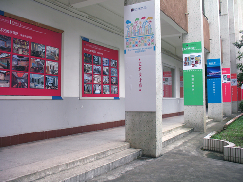 为了营造良好的校园文化氛围,9月10日,艺术设计系主任佘莉带领全体教师设计和布置了艺术文化长廊、民族艺术展厅,展现专业特色、师资风采、优秀毕业生事迹和办学成果,体现艺术文化魅力。一条书写着“跨入艺术殿堂,设计精彩人生”字样的十米长横幅在校园里格外引人注目,寄托着对新生的期望。