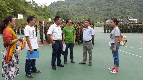 9月18日,该系领导老师又一次来到了军训地点——坡上新篮球场看望该系新生,亲切了解新生们的饮用水情况、身体状况、训练进程,并勉励他们坚持训练,锤炼意志,把军训作为大学的第一门课程,塑造强健体魄,为今后的学习生活打下基础。