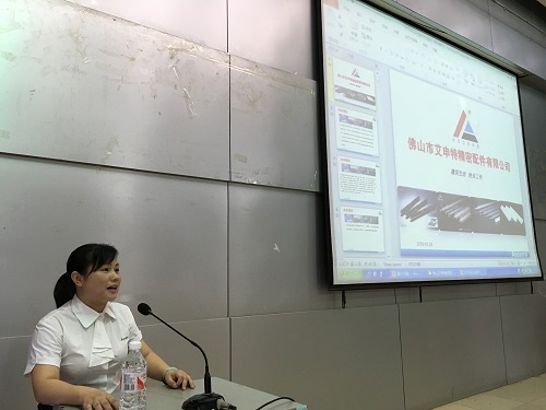 佛山市艾申特精密配件有限公司总经办主任宾梅英女士做就业宣讲