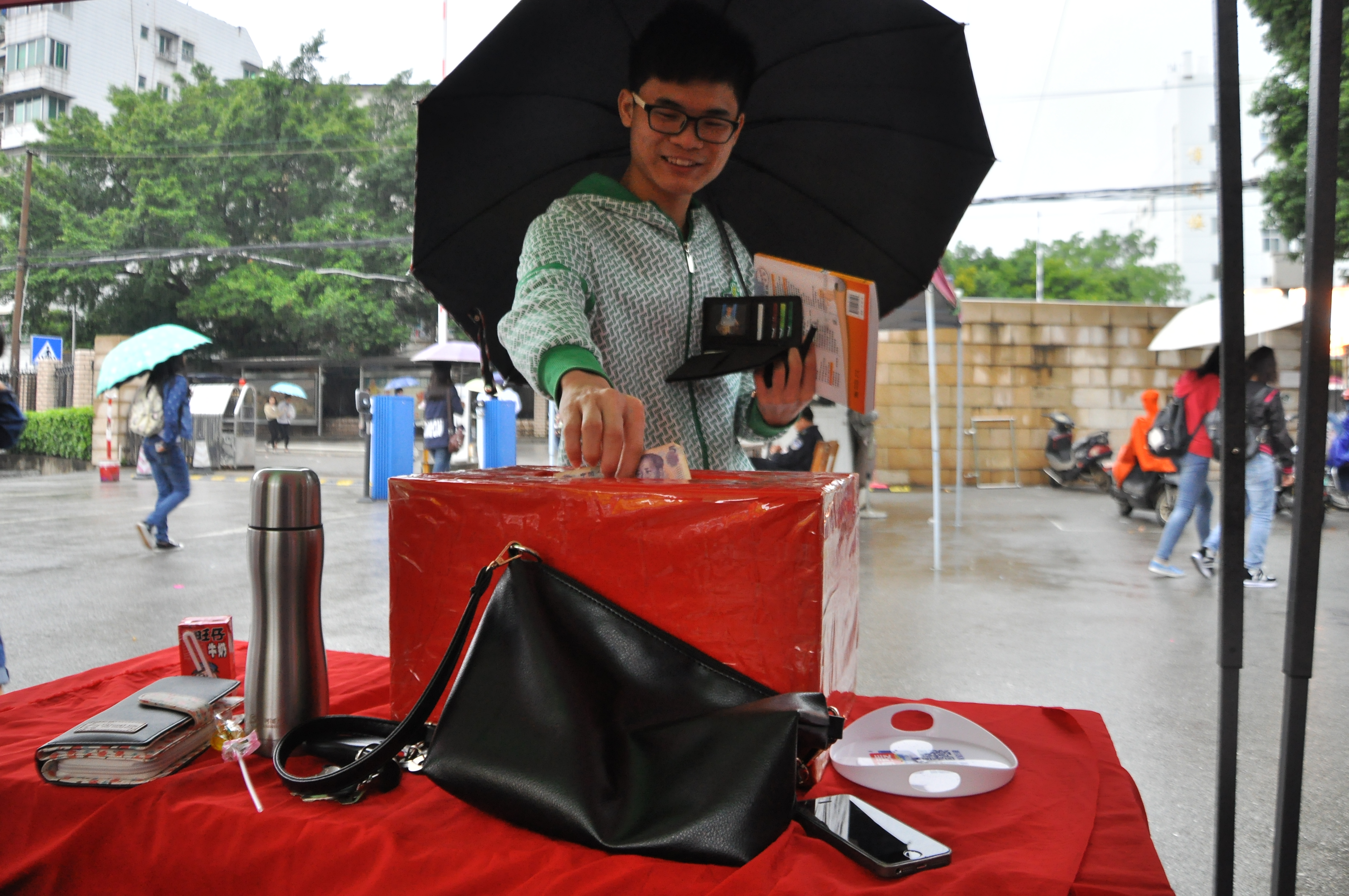 在公共基础部陈芳副主任简短的开幕式致辞之后,本次公益营销大赛拉开了帷幕。每一个团队都拿出自己最漂亮、最有特色的展品上台展示,为的是吸引注意,打响品牌,赚足人气。随着公益营销活动的开始,学院A区变得更加热闹起来。各大摊点中,有的大声呦喝、有的极力推销,每个人都使出浑身解数积极的投入到比赛中。琳琅满目的商品、摊前熙熙攘攘的人流和此起彼伏的吆喝声,为即将到来的“双十一”购物节增添了几分节日色彩。然而,天有不测风云,一场大雨突如其来,但各个团队并没有因为下雨撤摊,而是坚守阵地,在雨棚中继续叫卖。赛场除了进行商品销售之外,还设有爱心捐赠箱,接受爱心人士的捐赠,实行营销与公益相结合,最后在销量的基础捐赠出一部分公益基金给“女童保护”项目和资助贫困小学的学生。最后,“平凡梦”团队较好地把公益理念与销售策略相结合,最终获得“校园公益营销形象大使”荣誉称号,他们将于近期与领导、老师一同前往三江县独峒乡知了村中心小学、归滚小学、金秀共和希望小学进行现场捐赠活动以及“女童?;ぁ毕钅炕疃?。