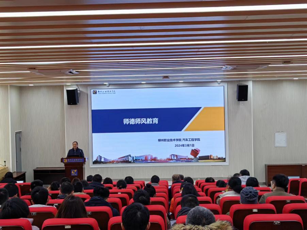 会上,汽车工程学院党总支书记覃宗万传达学校中层以上干部培训班相关精神,并强调师德师风建设的重要性。随后,他指出,新一轮“双高建设已经开启,办学机遇与挑战并存,希望全体教职工提升科研水平,提高社会服务质量,促进标志性成果落地。最后,他还着重强调了新学期要继续加强师德师风教育,对全体教职工作出三点提醒:一是善待工作,追求完美;二是善待学生,赢得信赖;三是善待同事,促进和谐。