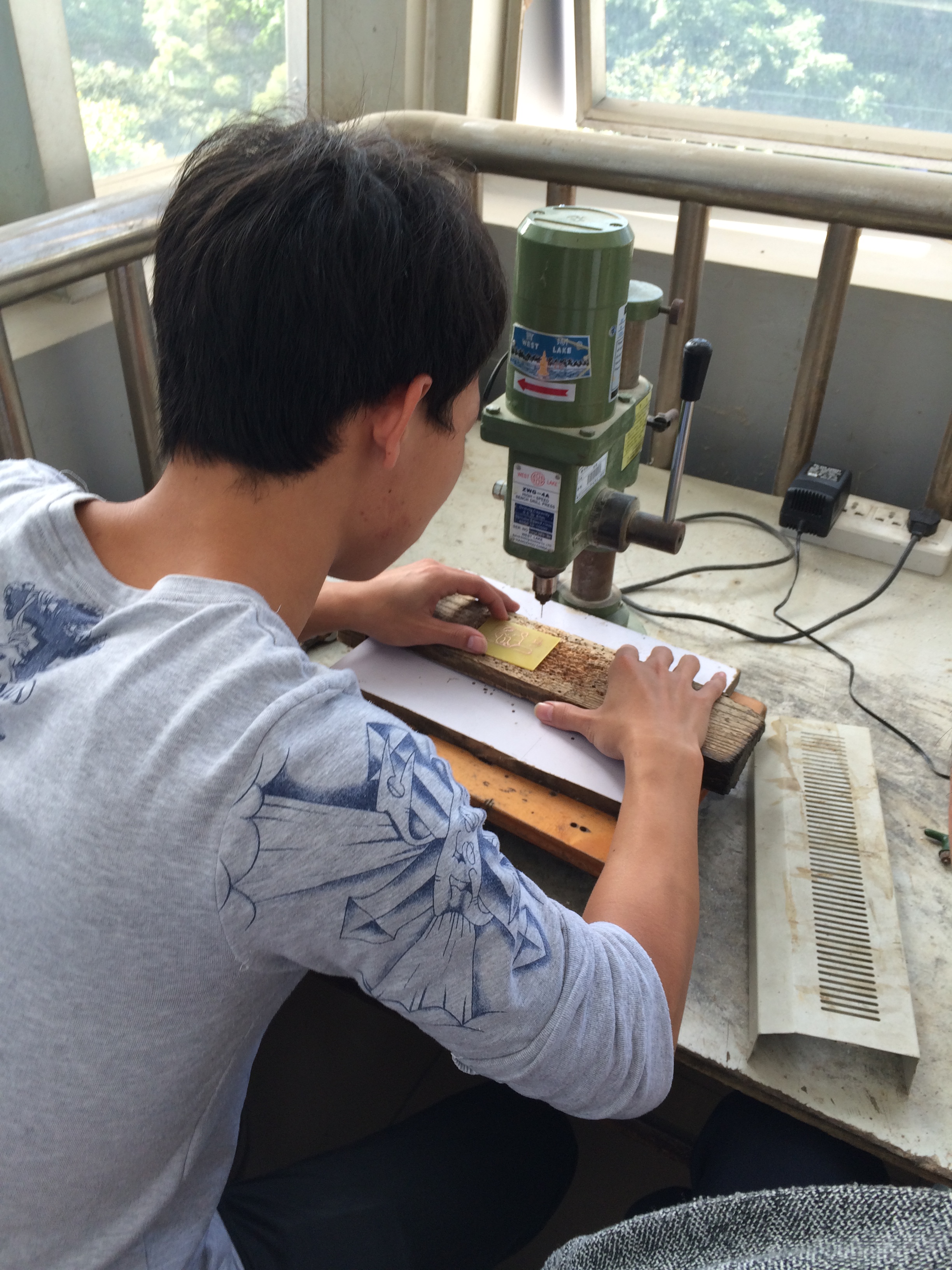 学生在制作电路板
