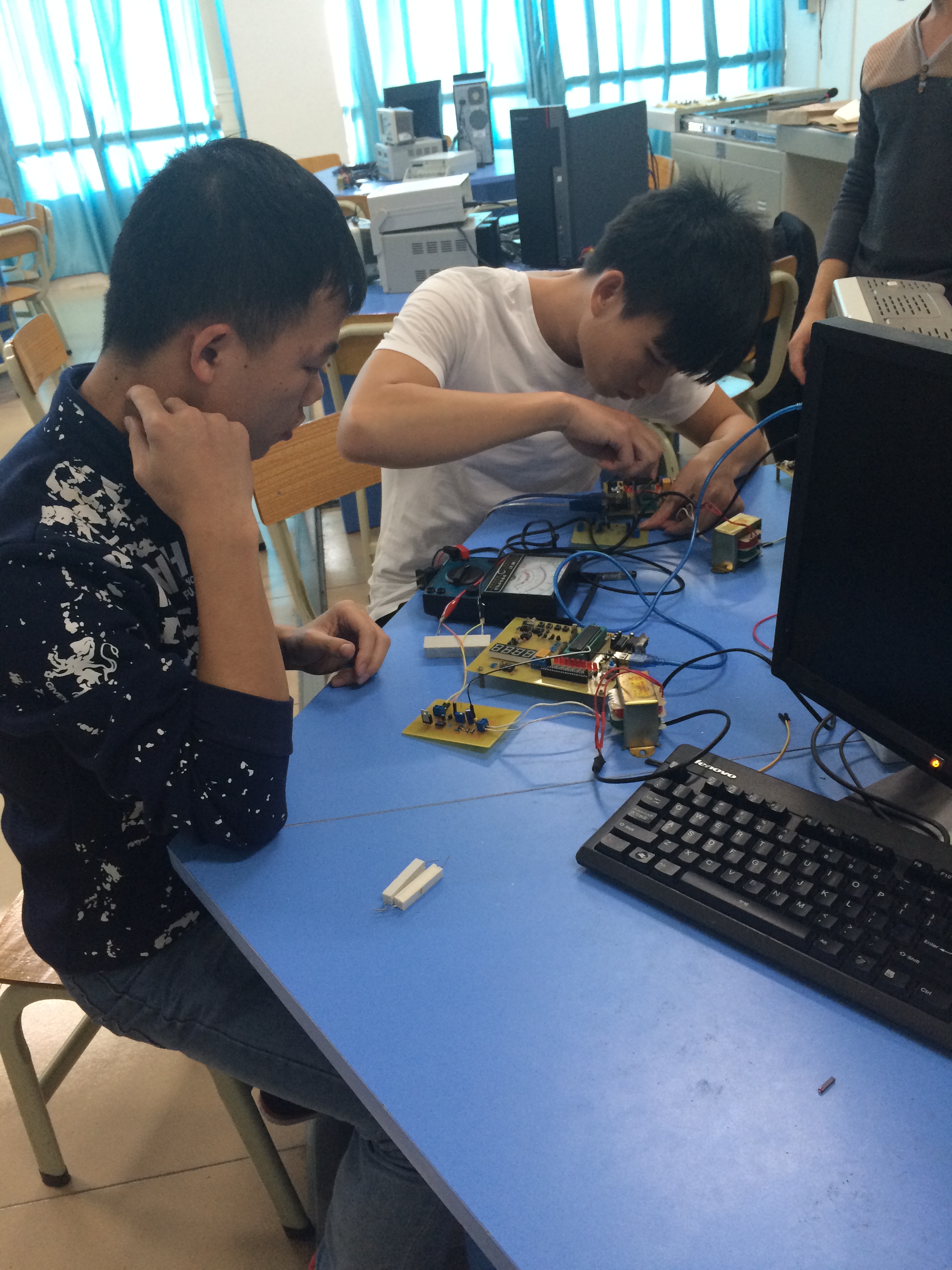 学生在安装元器件