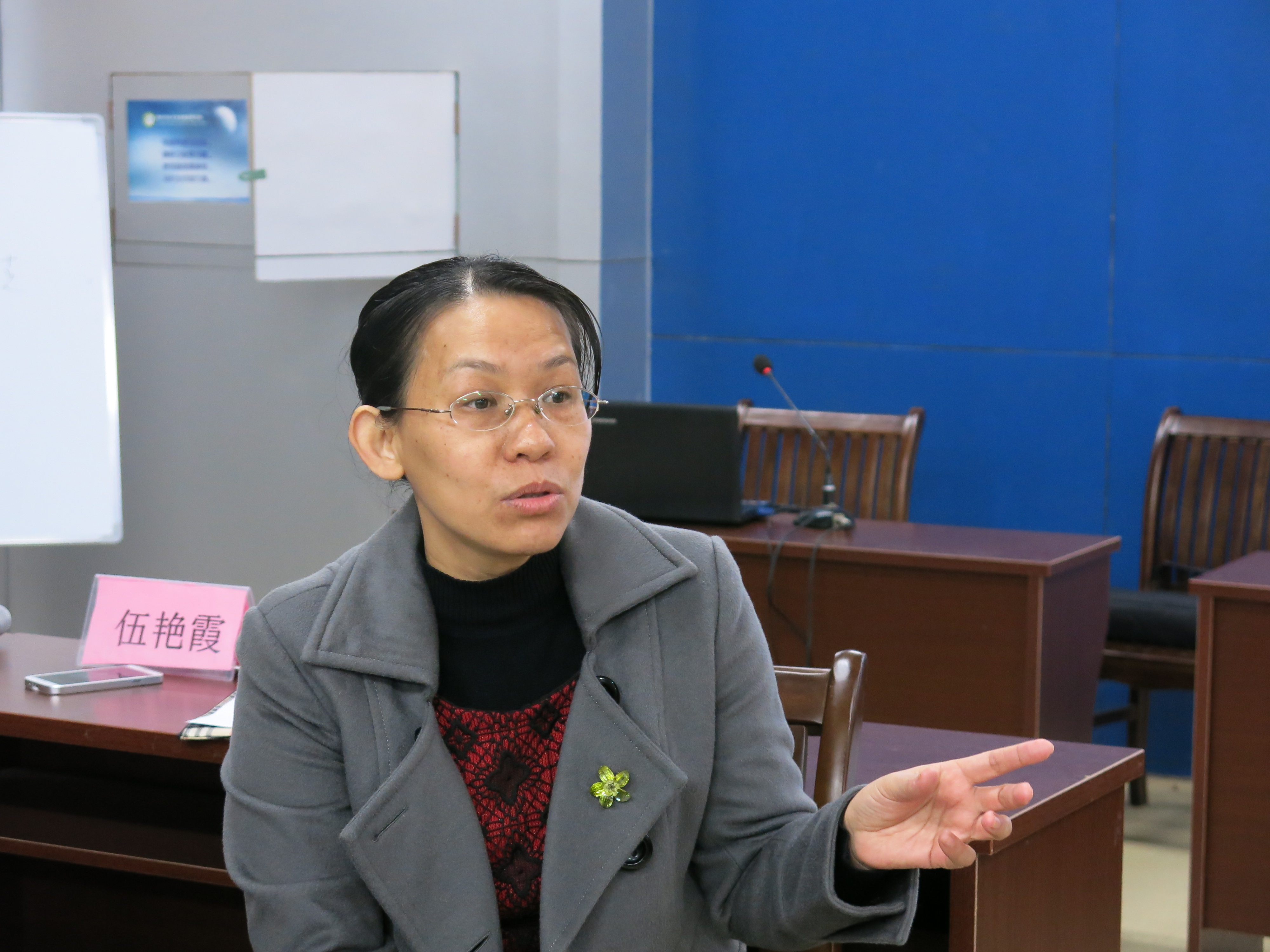 活动分两个阶段,第一个阶段是教学设计展示与研讨,点评专家由柳州市第八中学伍艳霞老师担任。首先,跟岗学习的四个小组派代表分别介绍并展示了自己在跟岗期间所学习到的教学设计方法,然后,伍艳霞老师对每个代表学员的教学设计都进行了详细点评,指出了可取之处及存在的不足,并提出了改进建议。