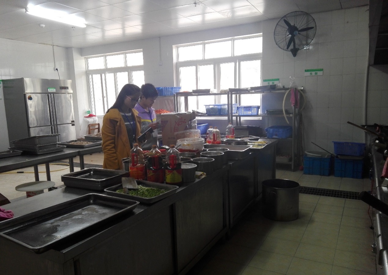工作小组深入餐厅、厨房、库房(粮库、调味仓库等),对食堂用水用电、安全通道、环境卫生、食品卫生、消防消毒等情况进行了全面、细致地检查。检查组每到一处都认真察看,听取食堂负责人的详细介绍。