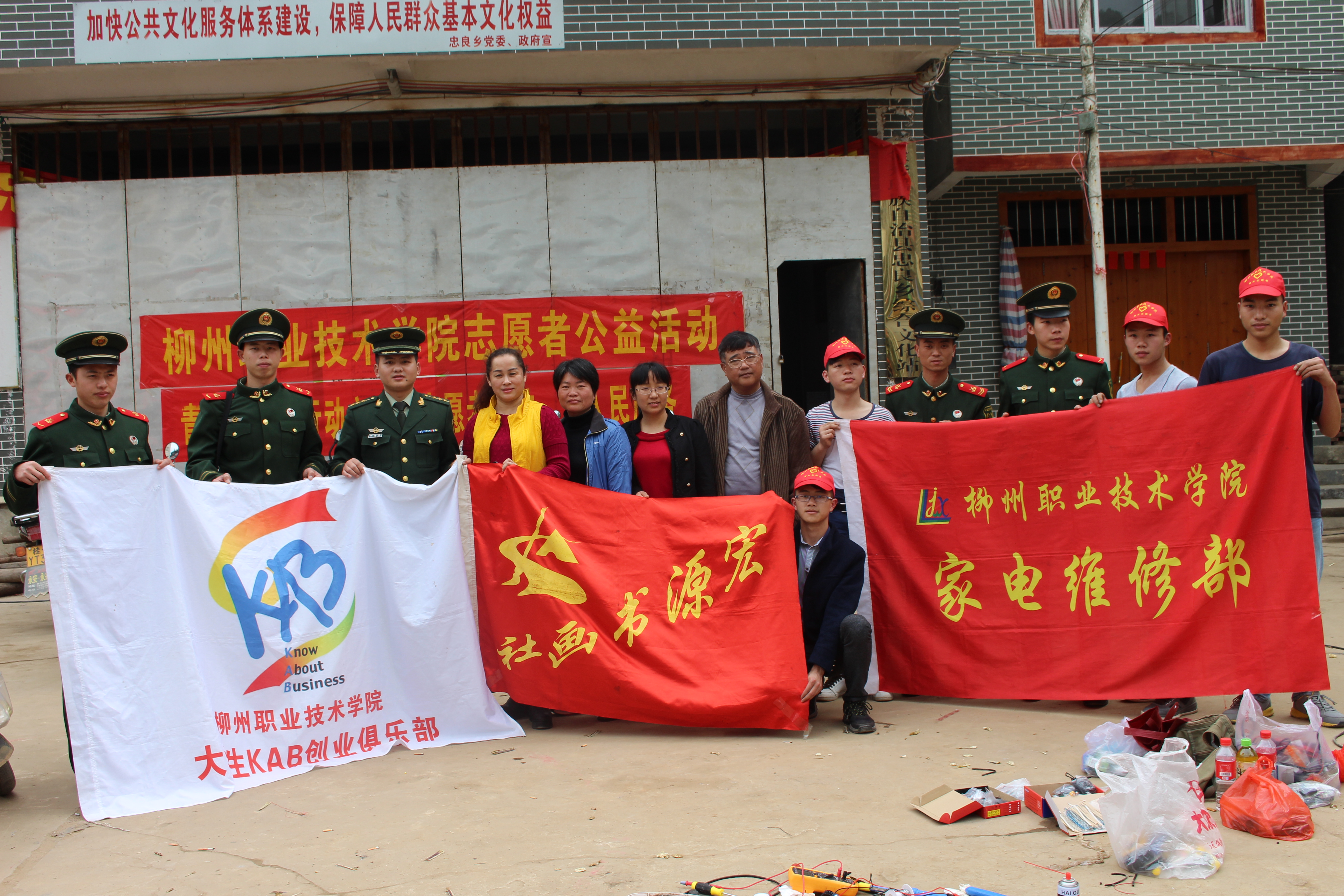 3月5日,我院大学生KAB创业俱乐部、家电维修部、宏源书画社志愿者团队们带着迫切为乡村百姓服务的心,经过4个小时崎岖山路颠簸到达了金秀县忠良乡。第二天清早,大部队兵分两路,一队到林秀小学和村公所开展“女童项目”防性侵知识讲座、教授书法以及现场捐赠活动,另一队则留在乡政府所在地上为村民们维修家电。