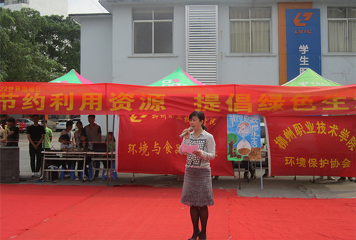下午3点的开幕式上,柳州市环保局总工程师覃国琴致开幕辞,对柳职院此次活动表示充分肯定,对同学们为环保事业所做的努力感到欣慰。她说,美好的环境要靠日常的维护,而不是靠“治理”,号召同学们在今后的学习和生活中继续秉承此次活动的主旨,从生活中的每一个小习惯、小行为做起,以实际行动关注环境,共建绿色地球家园。